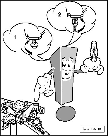 - Install one locating pin (T10096) - 2 - as soon as one bolt - 1 - is removed.