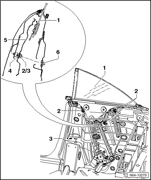 If adjustment ability at window regulator connection is not sufficient, there are adjustment possibilities on side window to window regulator connection.