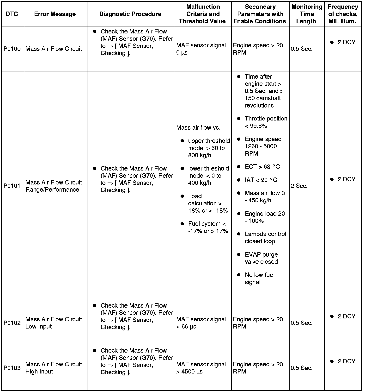 A L L Diagnostic Trouble Codes ( DTC )