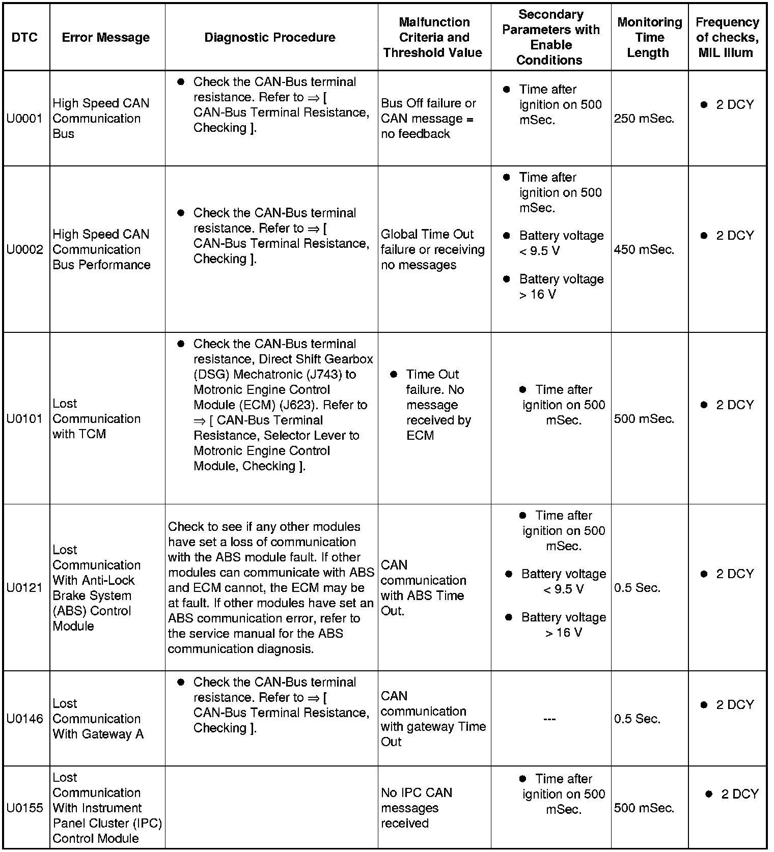 A L L Diagnostic Trouble Codes ( DTC )