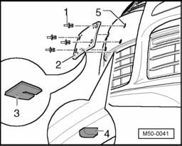 NOTE: The correct license plate holder - 2 - position is achieved by placing the guide - 3 - on the holder in the grille recess - 4 -.