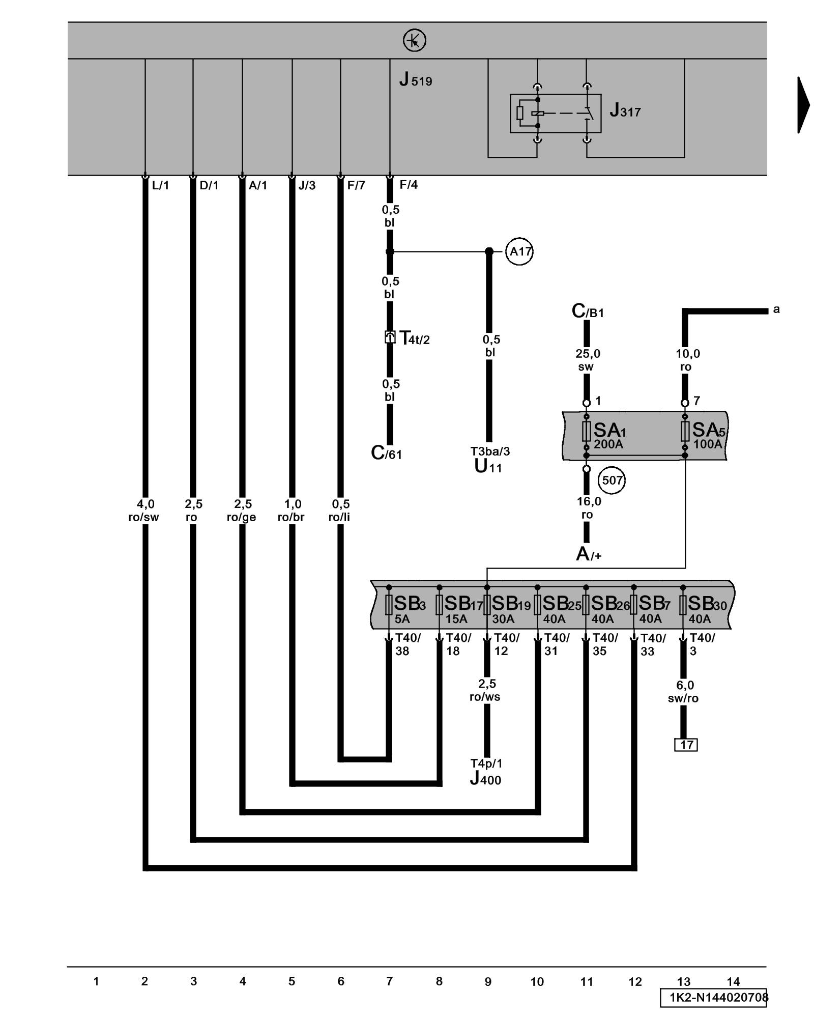 Power Supply Relay (terminal 30, B+), Vehicle Electrical System Control Module, Fuses SA, SB