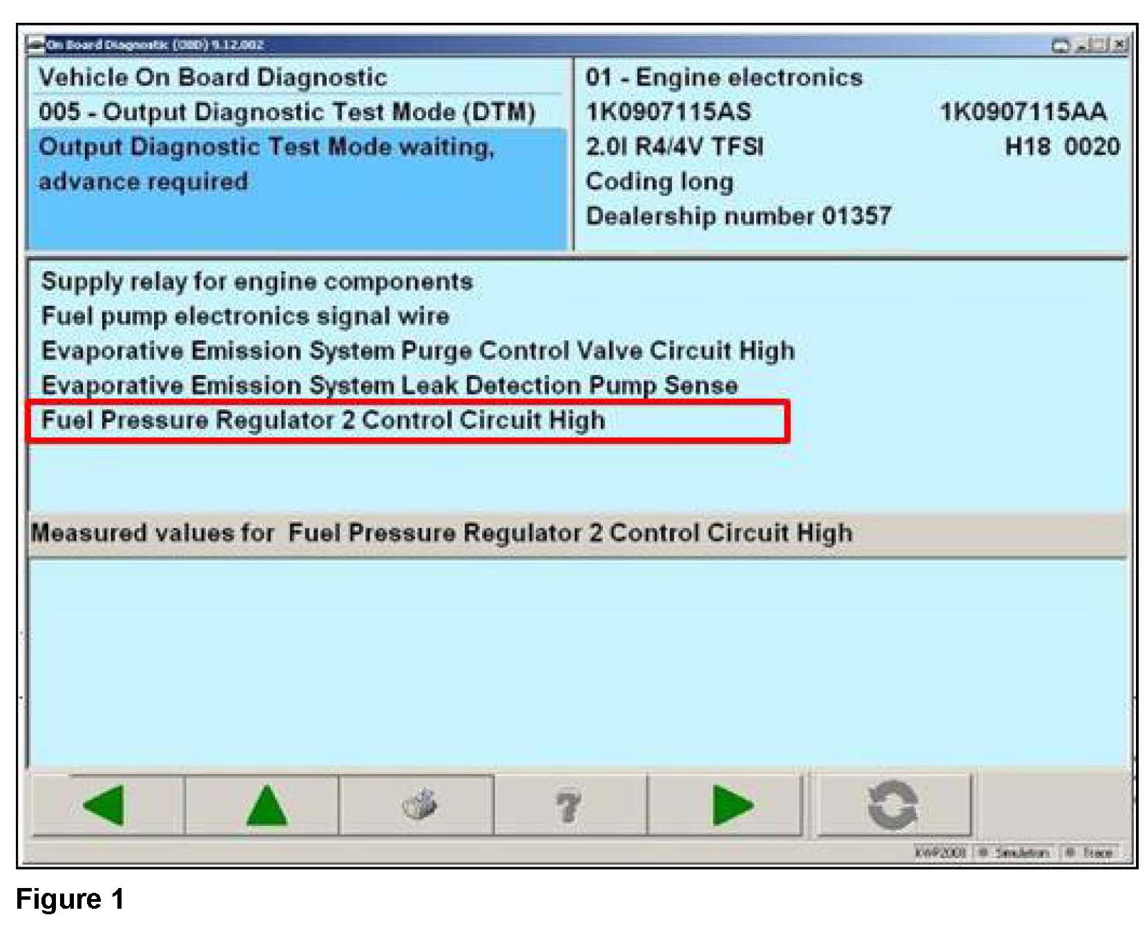 ^ When the test starts to check operation of the "fuel pressure regulator 2 control circuit high" (figure 1), listen for an audible "click" sound coming from the N276 pressure regulator.