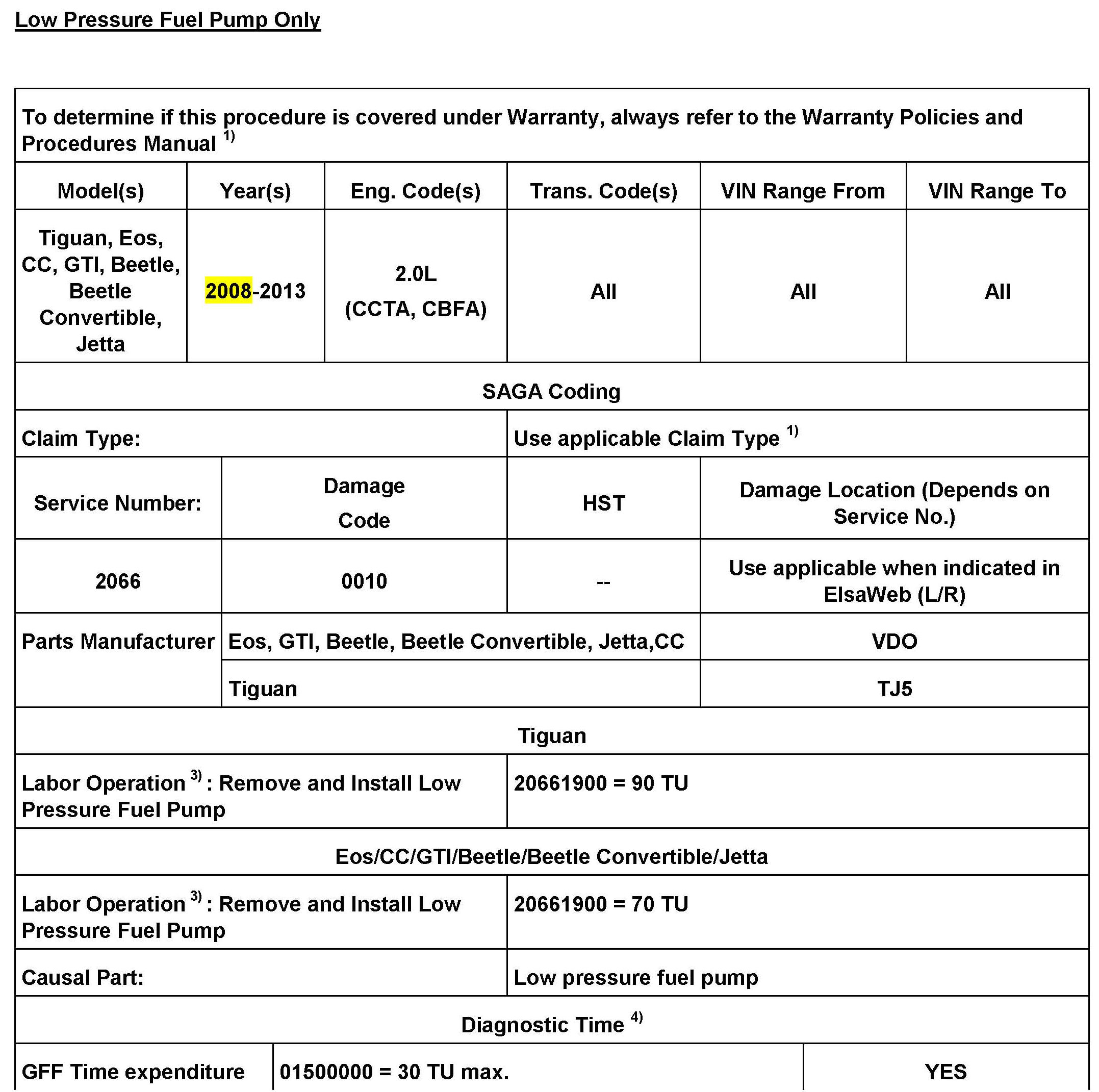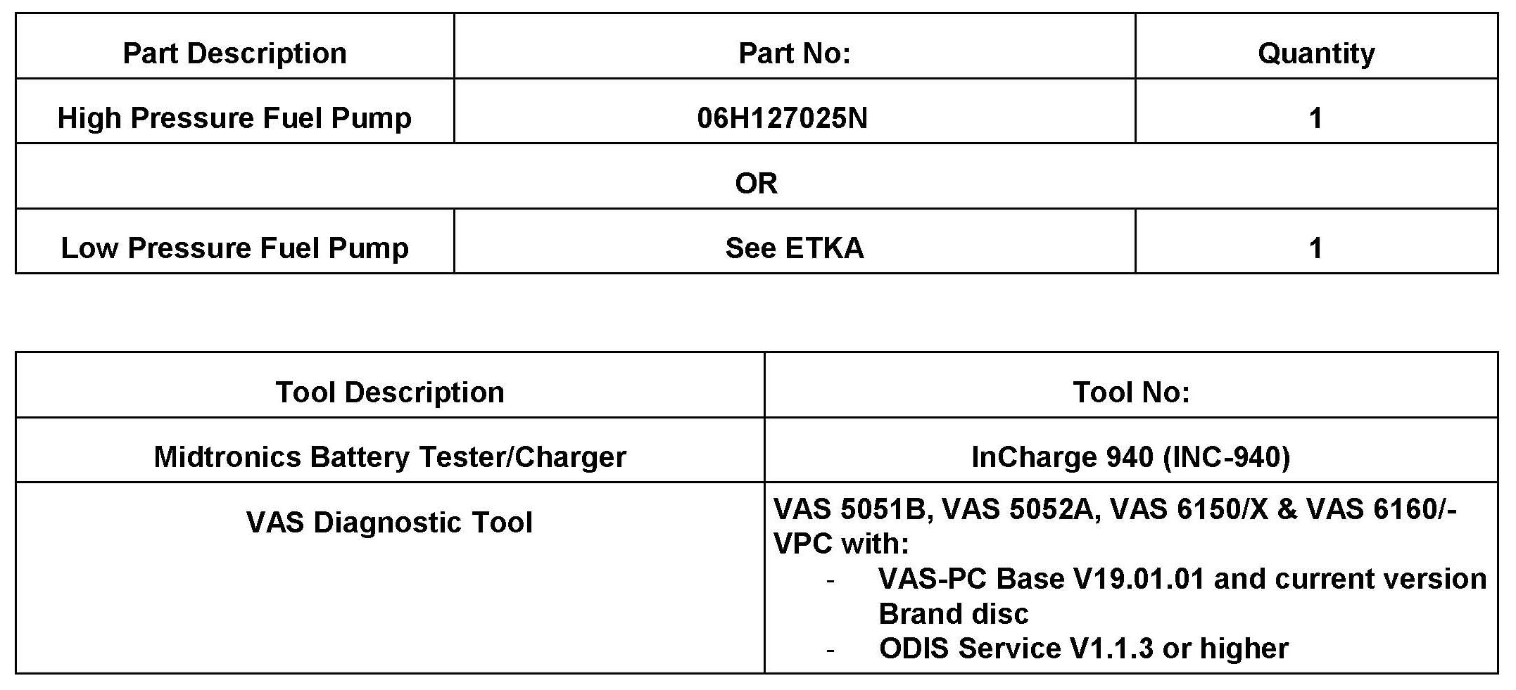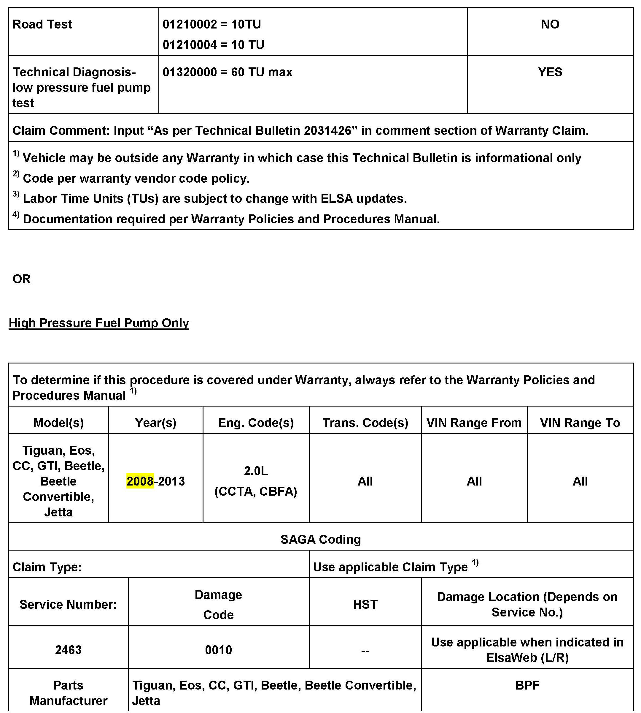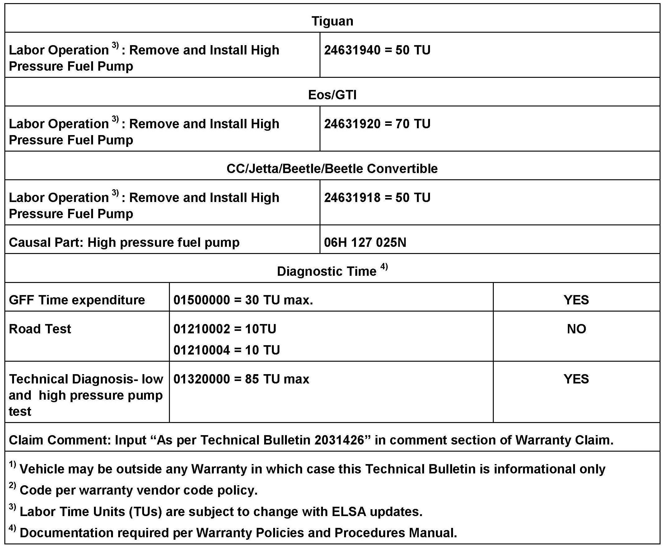 A completed high pressure fuel pump function test is required for reimbursement.