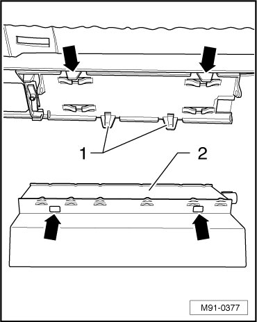 - Remove retaining clips - arrows -.