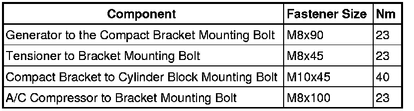 Generator Compact Bracket Tightening Specifications and Sequence, 2.0L FSI Turbo