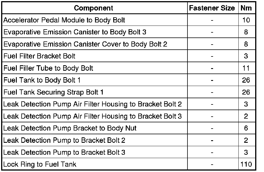 Fuel Supply - Fastener Tightening Specifications