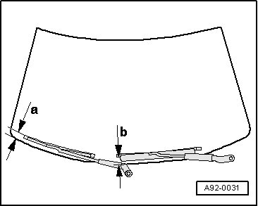 - Check if the windshield wiper blade tips are positioned with the following distances to the plenum chamber cover at the bottom of the windshield: