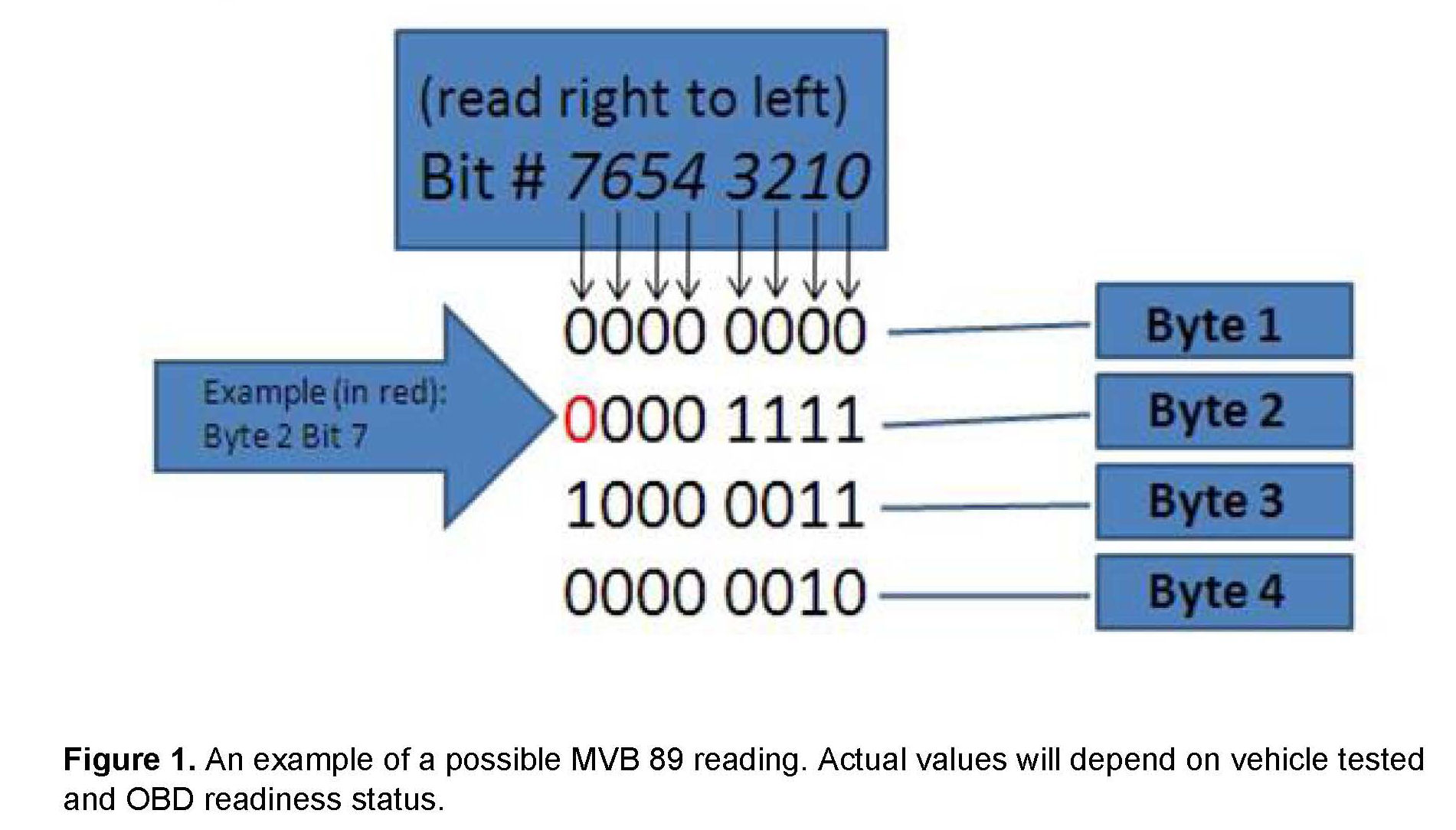 MVB 89 will store correct data concerning OBD readiness. Figure 1 illustrates how to manually read MVB 89.
