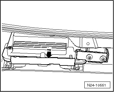 - Carefully push the screwdriver in the - direction of the arrow - and at the same time bend the locking bracket - 1 - upward.