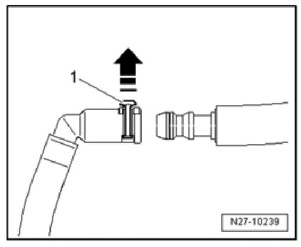 - To secure connection, connect hose connection and press in securing clip - 1 - until it engages.