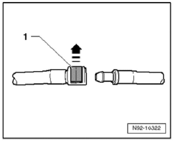 - Disconnect by lifting lock ring - 1 - approximately 1 mm - arrow - and then pulling apart both halves of coupling.