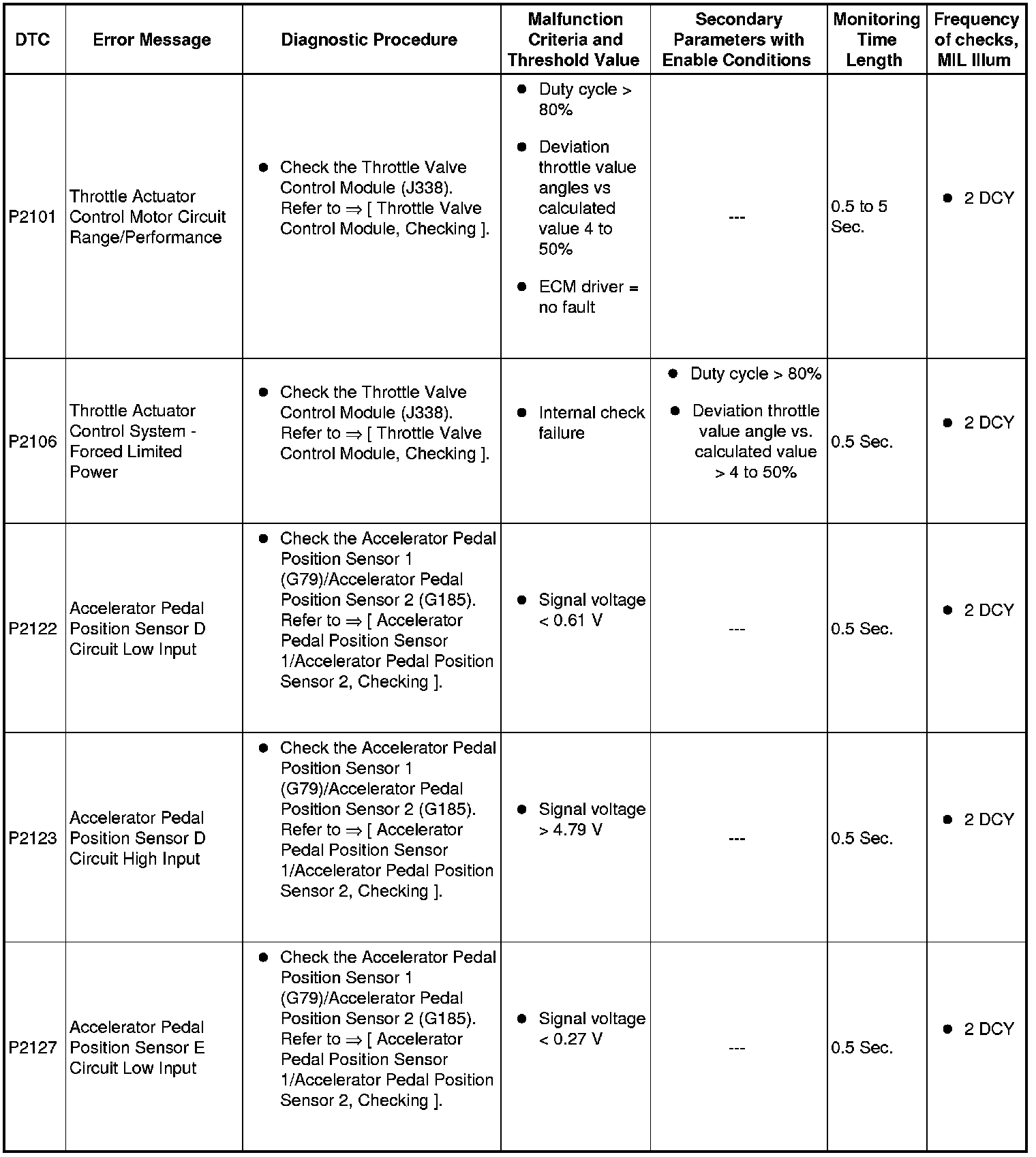 SAE P2xxx Diagnostic Trouble Codes