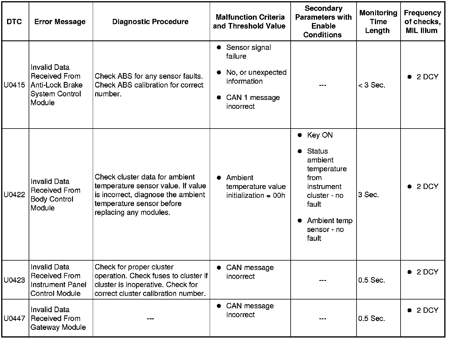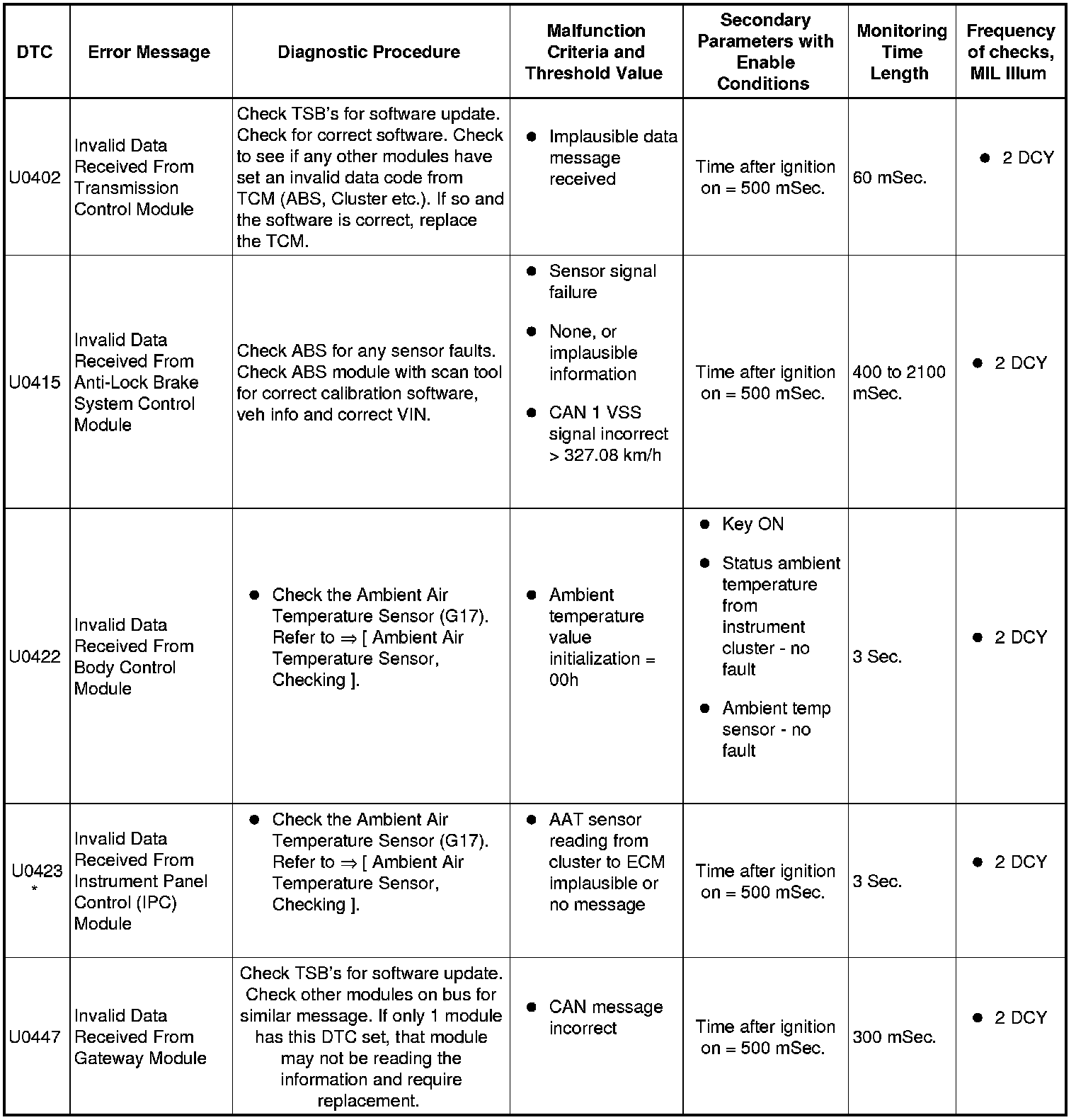SAE U0xxx Diagnostic Trouble Codes