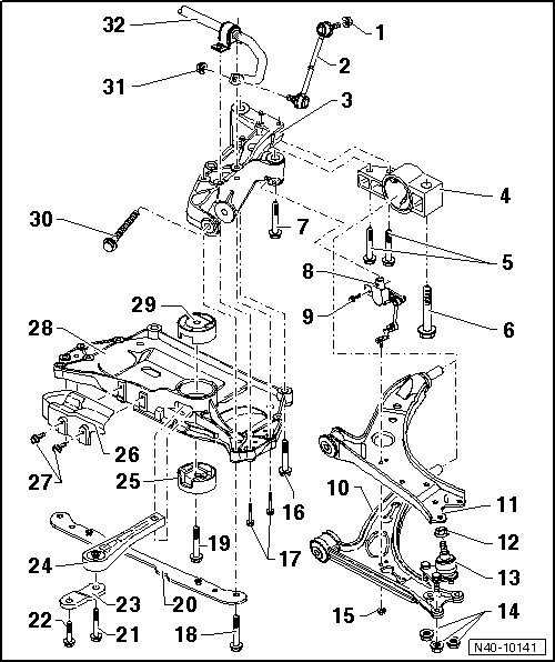 Removal and installation, without steering gear, refer to => [ Subframe without Steering Gear ] Subframe without Steering Gear.