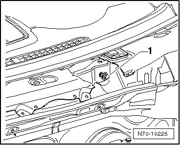 - Loosen two bolts - 1 - below heating or A/C mechanism 2-3 turns (9 Nm).