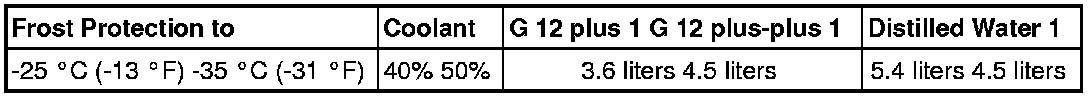 • If for climatic reasons a greater frost protection is required, the amount of coolant additive can be increased, but only up to 60% (frost protection to about -40 °C (-40 °F)), as otherwise frost protection is reduced again and cooling effectiveness is also reduced.