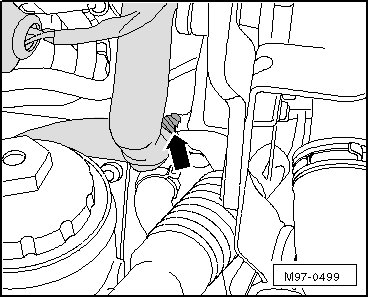 - Release the wiring harness clip and remove it from the bracket on the oil filter bracket - arrow -.