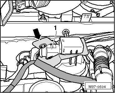 - Disconnect the connector from the charge pressure actuator position sensor (G581) - arrow - on the turbocharger vacuum diaphragm and guide the wire out of the mounts.