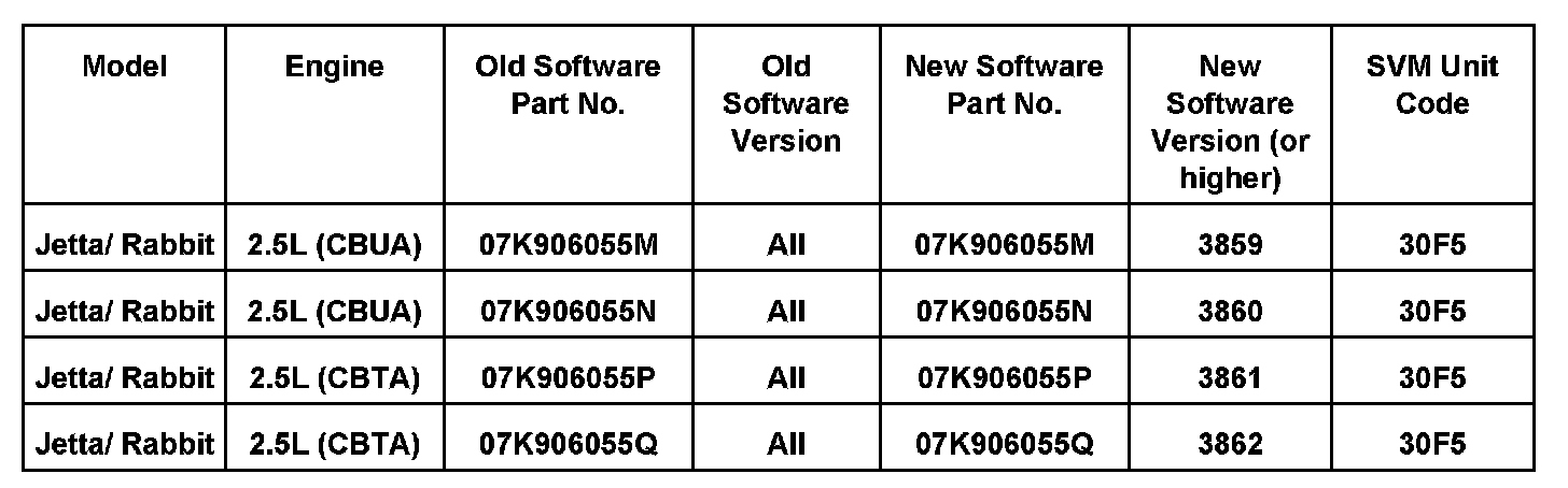 Software updated as of VIN: 1K_9M048612 for Jetta vehicles, Concern identified after end of production for Rabbit vehicles.