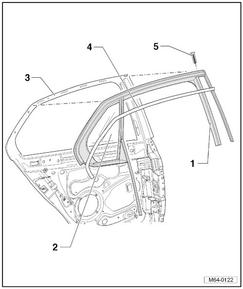 Removing and installing. Refer to => [ Window Guide Trim Molding ] Window Guide Trim Molding