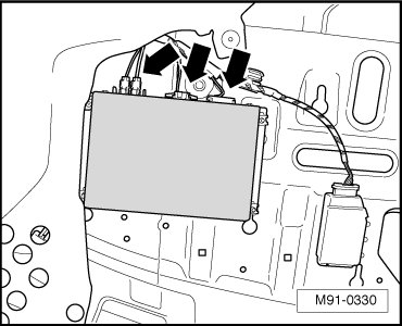 - Slide unit so that screws move towards openings in parcel shelf sheet metal.