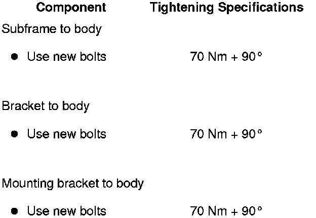 - Replace the bolts for the mounting bracket in succession on both sides using the (T10096) and tighten them to 20 Nm.