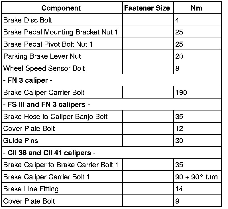 Brake System - Mechanical Components - Fastener Tightening Specifications