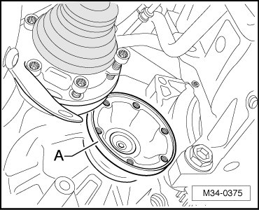 - Check release bearing for wear. If necessary, replace slave cylinder with release bearing --> [ Clutch Release Mechanism Assembly Overview ] Clutch Release Mechanism Assembly Overview.