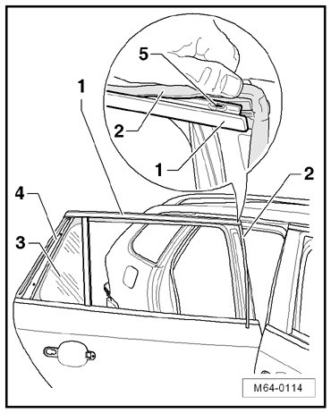 - Remove the expanding rivet - 5 - from the window guide trim molding - 1 -.
