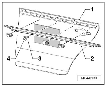 - Remove the four clips - 3 - from the window recess seal - 2 -.