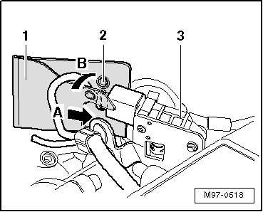 - Slide the heat shield - 1 - onto the component - 3 - in the direction of - arrow A -.