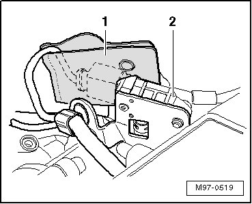 The illustration shows the heat shield - 1 - seated correctly on the component - 2 -,