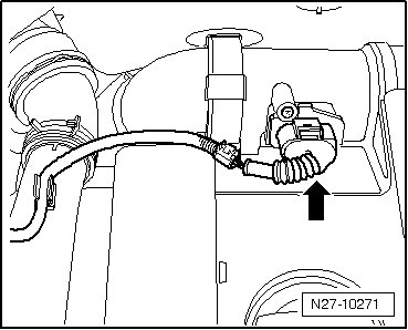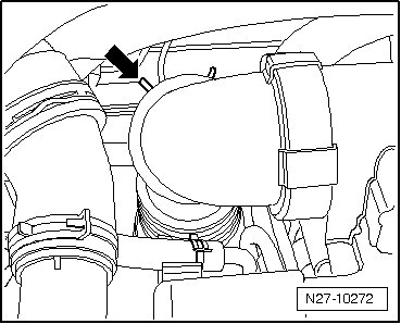 - Loosen spring clamp - arrow - using (VAS 5024 A).