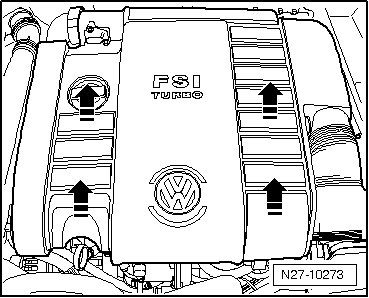 - Pull off engine cover upward - arrows -.