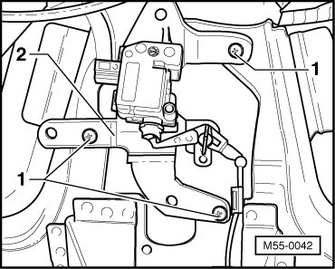 - Remove bolts - 1 - and remove wiring harness support - 2 -.