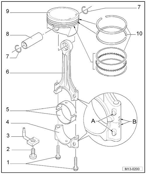 • Due to the way the separated connecting rod breaks (cracks), the cap fits only in one position and only onto the respective connecting rod.