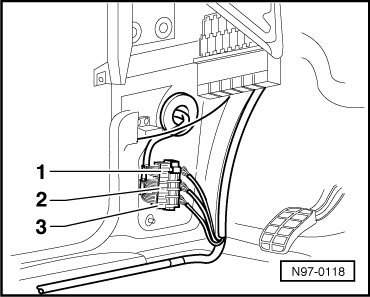 The connector station is located in the left front footwell behind the footwell trim panel.