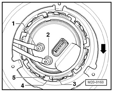 The tab - 4 - on the fuel delivery unit must lie between tabs - 3 and 5 -.