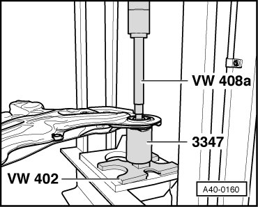 • To press in the bonded rubber bushings use, for example, sliding oil (G 294 421 A1)