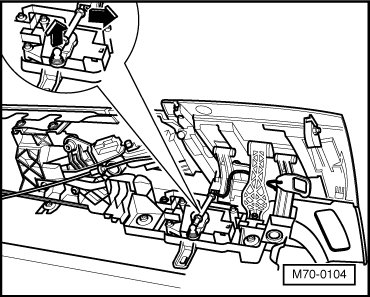 - Press pressure rod out of joint piece - arrows -.