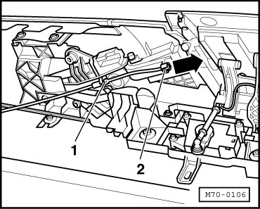 - Pull spherical end - 2 - out of the bracket in the small trim - arrow -.