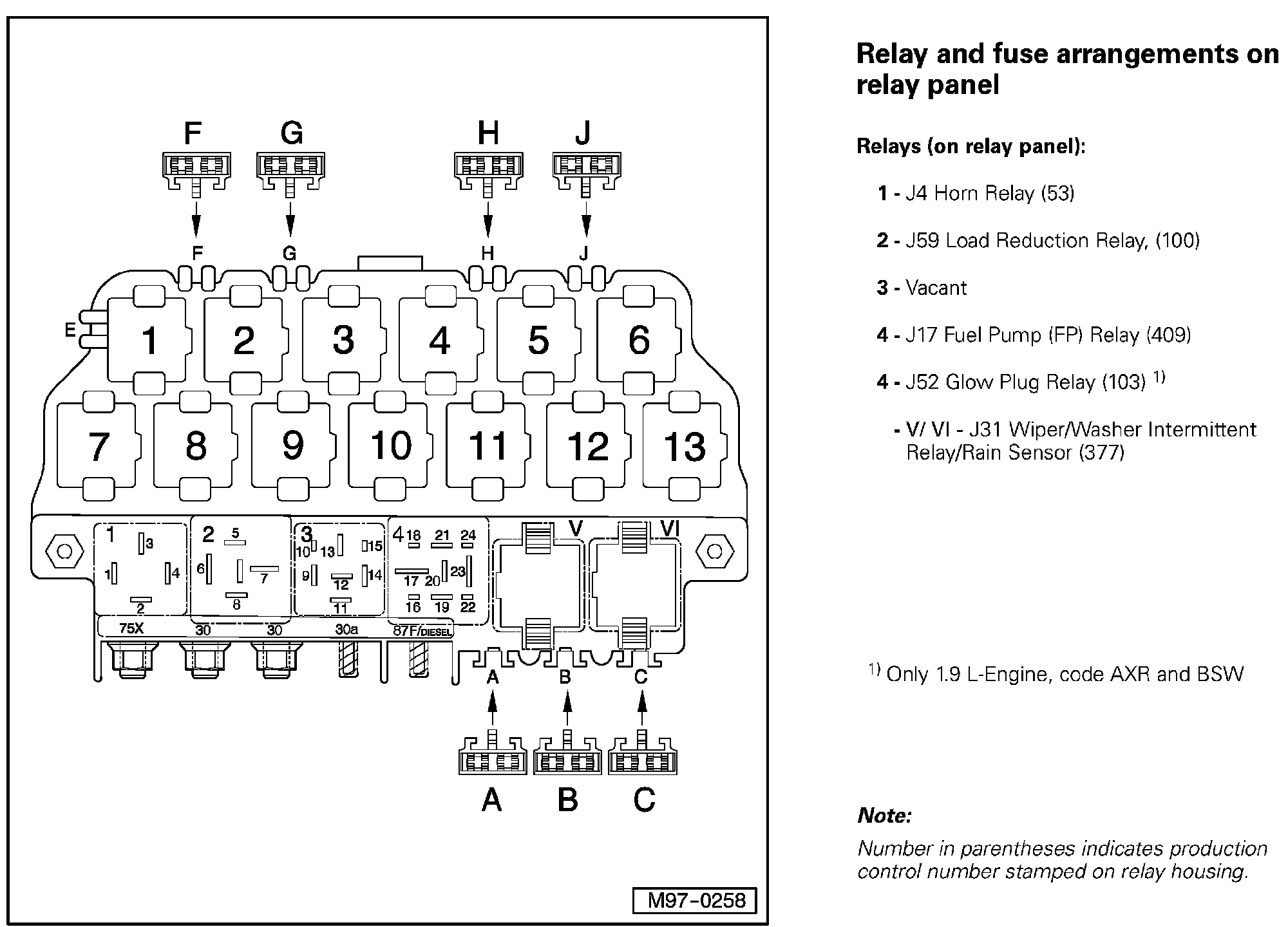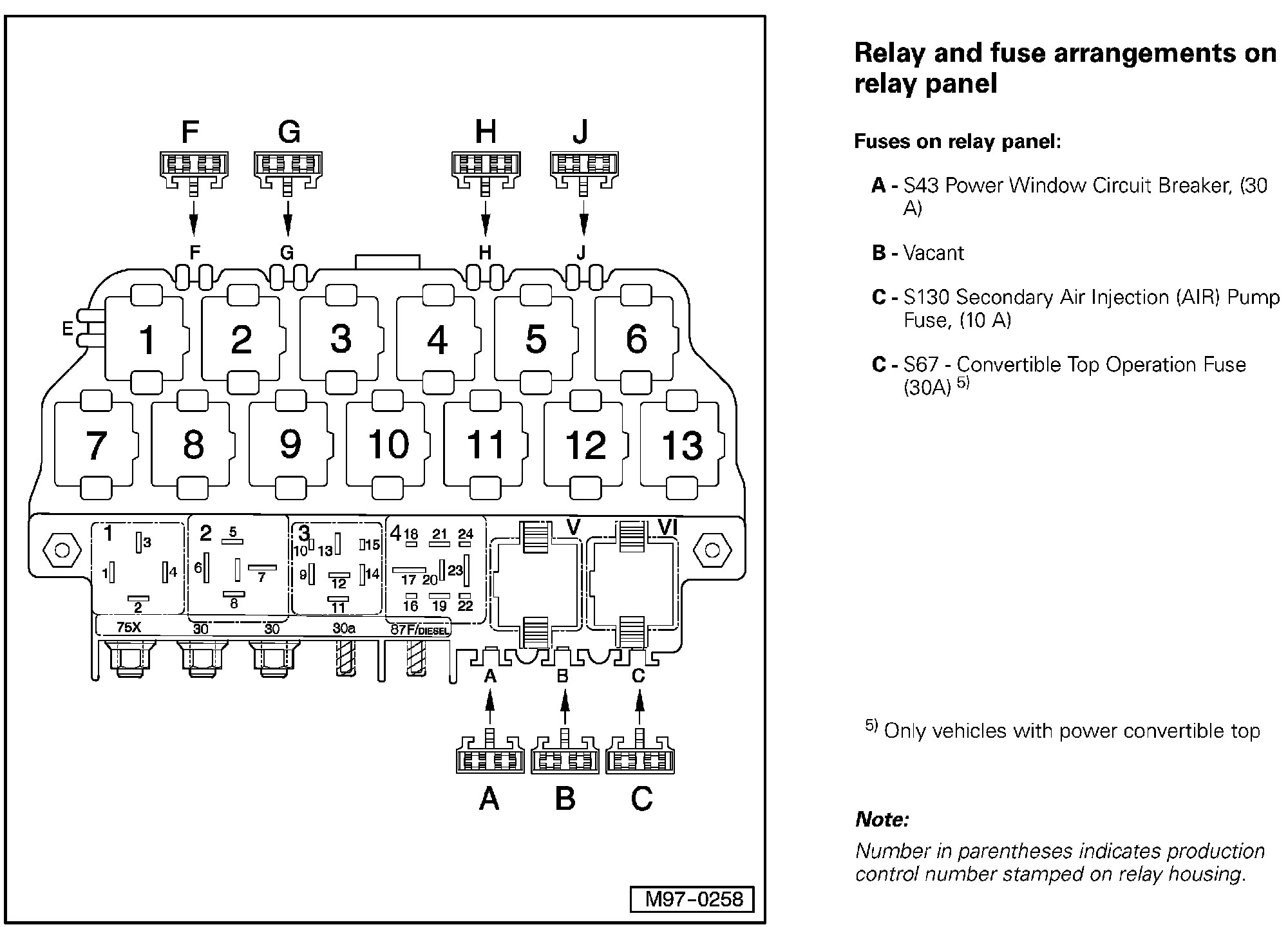 Relay and Fuse Arrangements on Relay Panel (Relays):