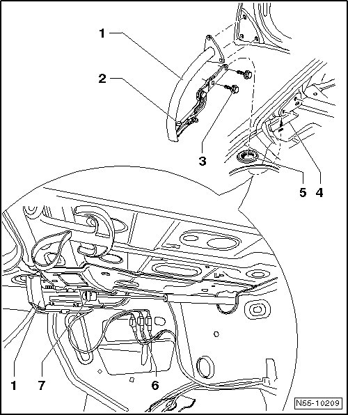 - Remove the gas-filled strut - 7 - from hinge - 1 -. Refer to => [ Gas Strut ]. Gas Strut