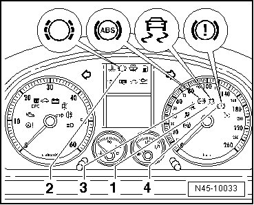 • If the ASR/ESP control lamp (K155) - 1 - does not turn off after the ignition is switched on and the test sequence is completed, the malfunction may be:
