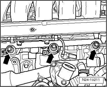 - Remove the bolts - arrows - for the fuel rail for cylinders 2, 4 and 6.