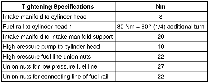 • Evenly tighten the fuel rail to cylinder head with new bolts working from the inside to the outside.
