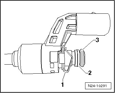 - Install a new support washer - 1 - onto (T10133/13) and place this as shown on the fuel injector.
