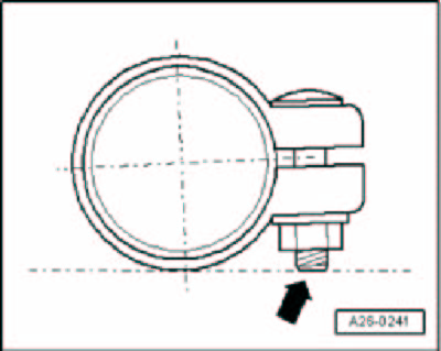 - Install clamping sleeve so that bolt end - arrow - does not project beyond lower edge of clamping sleeve.