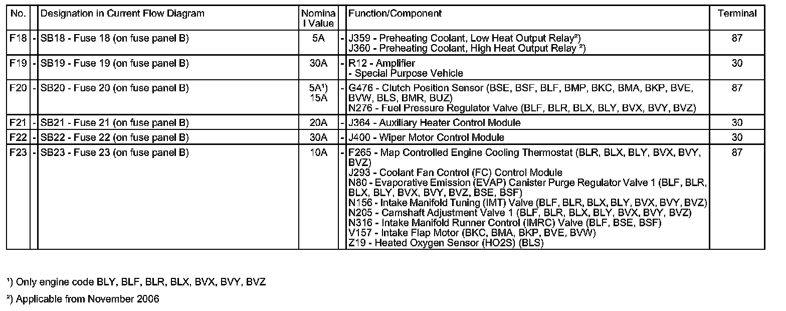 Fuse Arrangements On Electronics Box High, Engine Compartment, Left (Low Box) Part 3: